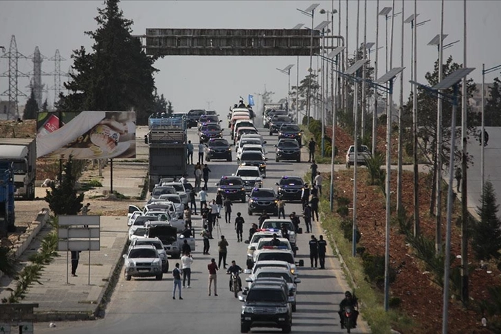 Yaklaşık 250 teröristi taşıyan ve toplam 35 araçtan oluşan ilk konvoy, Halep'ten ayrıldı. Konvoyda üzerine ağır silah yerleştirilmiş askeri araçlar ve içinde silah veya mühimmat olduğu düşünülen brandalı bir kamyon yer aldı.