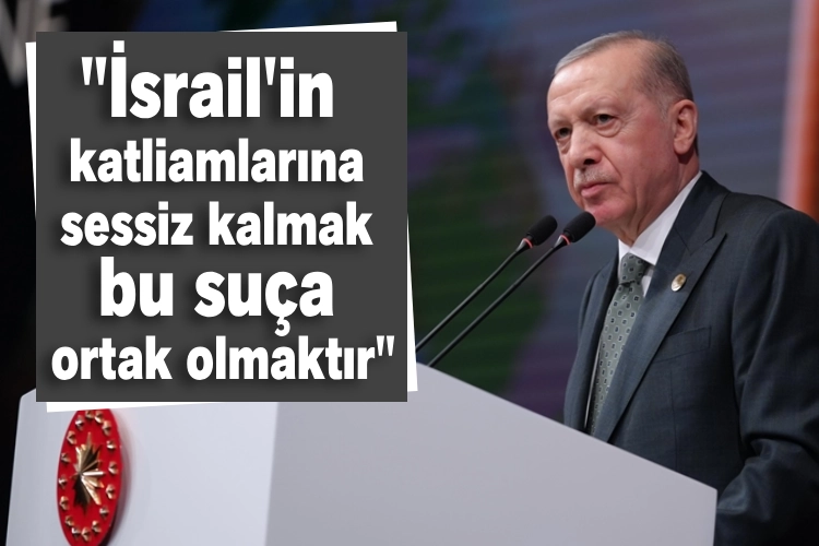 Erdoğan, "İsrail'in katliamlarına sessiz kalmak bu suça ortak olmaktır. İsrail 1,5 senedir en temel insan haklarını hiçe sayarak, uluslararası hukuku ayaklar altına alarak Filistin halkına karşı apaçık bir soykırım uyguluyor." dedi. "Savaşta dahi olsa meşru bir devlet böyle hareket eder mi? Bunun adı devlet terörü değil midir? Onun için İsrail terör devletidir." diye belirtti.