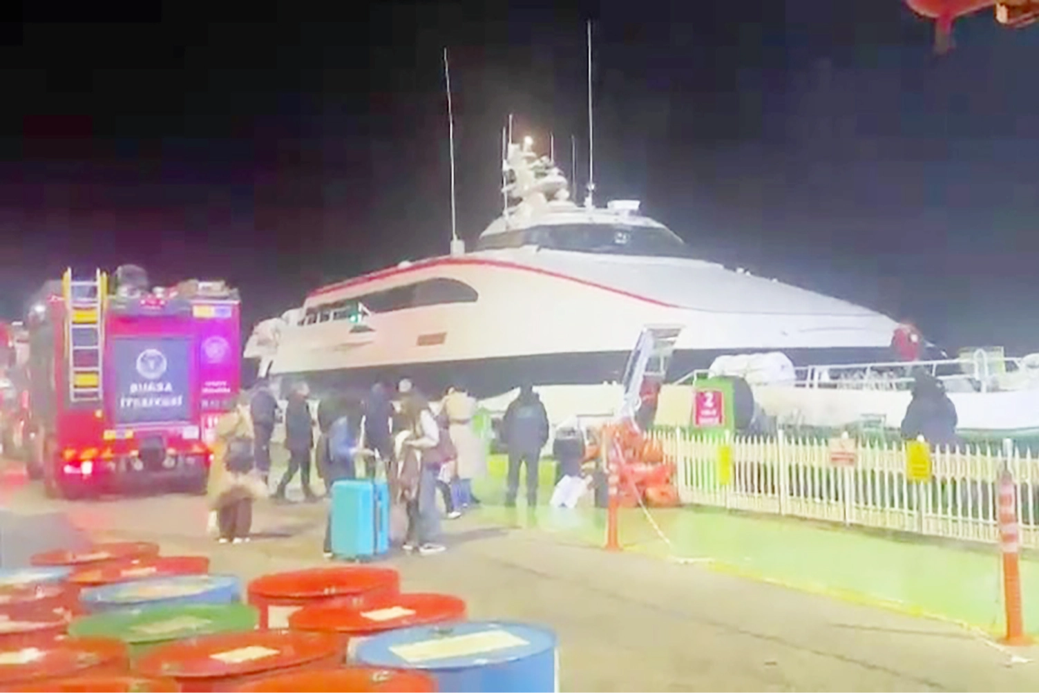 İhbar üzerine olay yerine 6 itfaiye aracı sevk edildi. Ekipler, kısa sürede limana yanaşan gemiye müdahale etti. Yangın kısa sürede kontrol altına alınırken, itfaiye ekipleri tarafından vatandaşlar tahliye edildi. Deniz otobüsü içerisinde yangın sebebiyle panik yaşayan yolcuların o anları, vatandaşların kameralarına yansıdı. Görüntülerde yolcuların koltukların altında bulunan can yeleklerini taktığı, panik yaşayan bazı yolcuların ise çığlık attığı görüldü. Deniz otobüsü içerisinde bulunan bir sağlık görevlisinin ise panikleyen vatandaşları sakinleştirmeye çalıştığı görüldü.