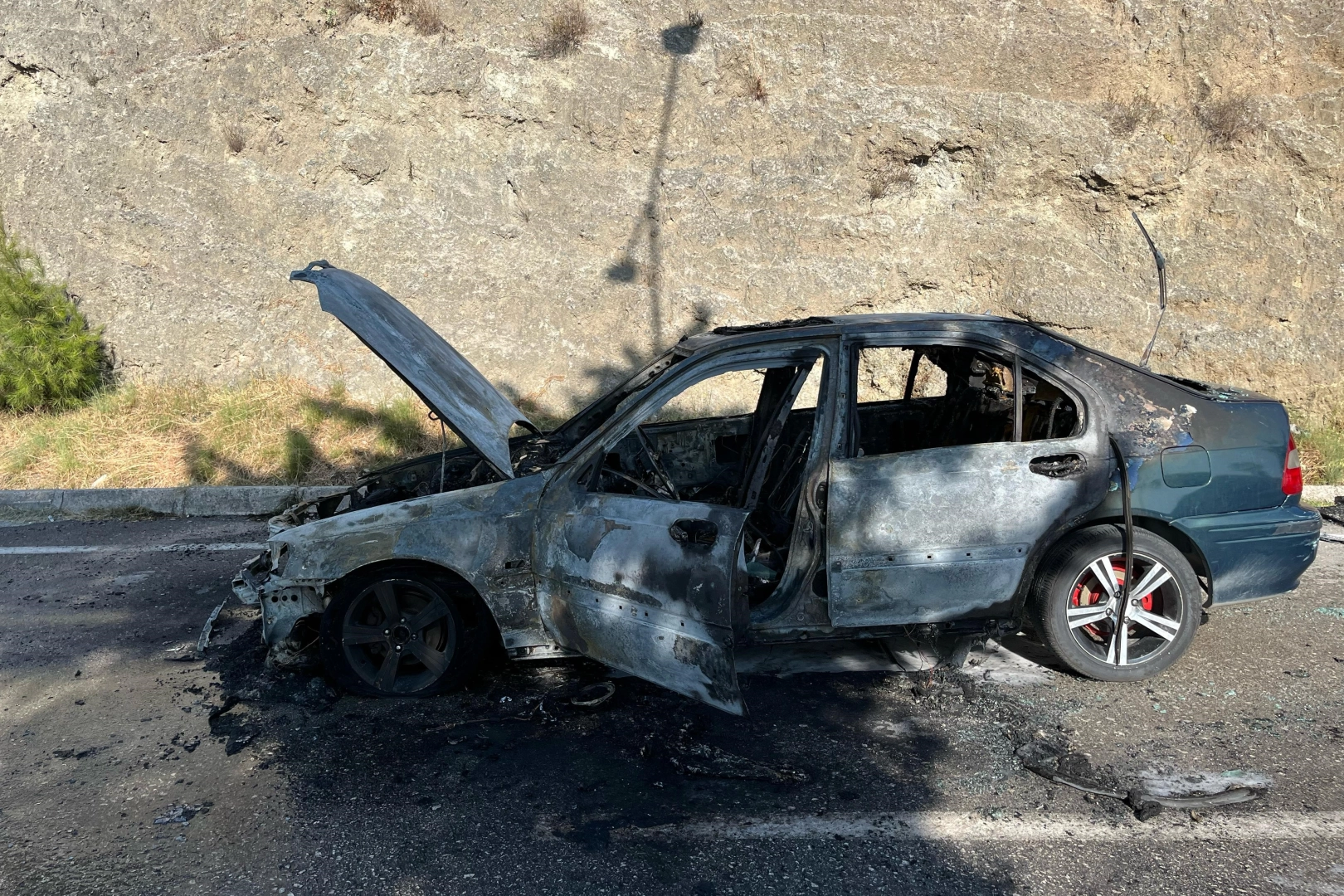 Hatay'da sürücüsünün 20 gün önce satın aldığı Honda marka otomobil, seyir halindeyken yanarak kullanılmaz hale geldi.