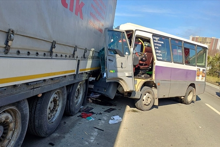 Artvin Caddesi Yanmış Köprü mevkisinde Yaşar K'nin kullandığı 08 D 5020 plakalı minibüs, yol kenarında park halindeki 08 ABP 684 plakalı tıra çarptı.
