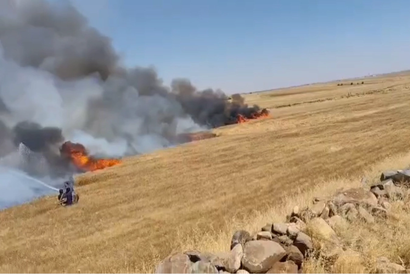 Edinilen bilgiye göre, yangın, Viranşehir ilçesine bağlı Elbeğdin ve Satıcık Mahalleleri arasında bulunan buğday ekili arazide çıktı. Çıkan yangın, rüzgârın etkisiyle kısa sürede yayıldı. İtfaiye ve vatandaşların müdahalesiyle saatler sonra kontrol altına alınan yangında büyük çapta maddi zarar oluştu. Yangına müdahale eden 5 kişi yaralandı. Viranşehir Devlet Hastanesine kaldırılan yaralılardan T.G.'nin vücudunda ağır yanıklar oluştuğu, durumunun ciddiyetini koruduğu öğrenildi. T.G., sevk edildiği Şanlıurfa Mehmet Akif inan Eğitim ve Araştırma Hastanesindeki yoğun bakımda ünitesindeki tedavisinin sürdüğü bildirildi. Yangının çıkış nedenine ilişkin inceleme başlatıldı.