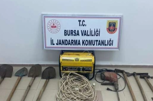 Olay, İznik ilçesi Boyalıca Mahallesi’nde meydana geldi. Edinilen bilgiye göre, jandarma bir tarlara definecilerin izinsiz bir kazı yapacağı şeklinde istihbarat aldı. Bunun üzerine hemen harekete geçen ekipler, bölgede yaptığı incelemelerde şüpheli bir aracın gezdiğini tespit etti. Kazı yapılan alana operasyon yapan ekipler, şüpheli E.G. (46) ve D.K.’yi (23) gözaltına aldı. Olay yerinde yapılan araştırmalarda ise 1 jeneratör, hilti, 4 tane kazma, 4 adet kürek, 25 metre elektrik kablosu, 2 tane manivela çubuğu, demir şiş, balyoz, 3 tane hilti ucu ele geçirildi.