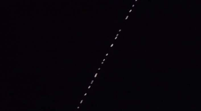 Bursalı vatandaşlar gökyüzünden sıralı şekilde dolaşan cisimler olduğunu görünce panik yaparak ne olduğunu anlamaya çalıştılar. Bir süre sonra gökyüzünden dolaşan cisimlerin Elon Musk’ın internet uyduları olduğu ortaya çıktı. Sıralı uydular Bursa üzerinden Güneye doğru gittiği görüntülendi.
