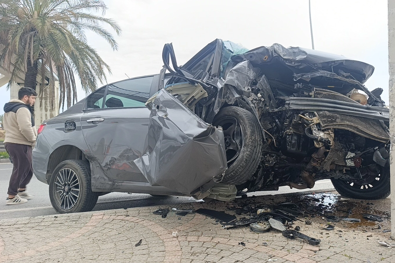 Kaza, Alanya-Antalya D-400 kara yolunda meydana geldi. Edinilen bilgiye göre, Alanya'dan Antalya istikametine seyreden Selim U.'nun kullandığı 07 ASC 040 plakalı otomobil, Sorgun-Otogar Köprülü Kavşak çıkışında yan yoldan gelen Levent Y.'nin kullandığı 07 LDD 50 plakalı otomobille çarpıştı. Çarpmanın etkisiyle savrulan 07 ASC 040 plakalı otomobil, yaya üst geçidi altındaki beton kolonlara çarparak durabildi. Kaza ihbarı üzerine olay yerine Antalya Büyükşehir Belediyesi İtfaiyesi Manavgat Birimine bağlı kurtarma, sağlık ve Manavgat Emniyet Müdürlüğü Trafik Denetleme Büro Amirliği ekipleri sevk edildi. Beton kolona çarparak hurdaya dönen araç içerisinde sıkışan sürücü Selim U., itfaiye ve sağlık ekipleri tarafından araçtan çıkarıldı. Yaralı sürücü, sağlık ekiplerinin olay yerindeki ilk müdahalesinin ardından ambulansla hastaneye kaldırıldı. Yaralı sürücünün hayati tehlikesinin bulunduğu öğrenildi.