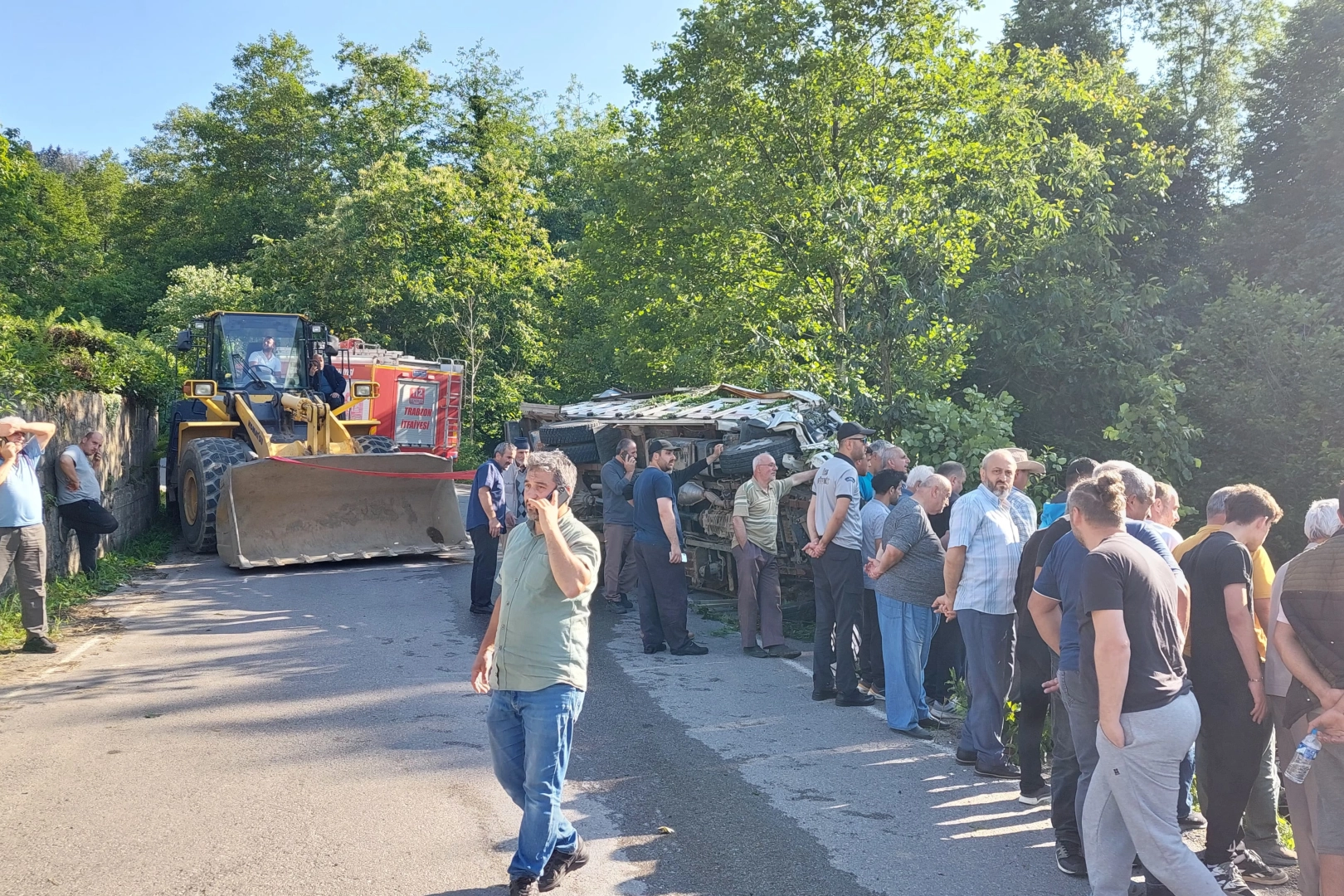 Kaza, Of ilçesinin Bölümlü Mahallesi'nde meydana geldi. Edinilen bilgiye göre, topladığı çayları fabrikaya taşıyan özel bir firmaya ait kamyonet, sürücüsünün direksiyon hakimiyetini kaybetmesi sonucu menfeze düştü. Ters dönen kamyonetin sürücüsü F.B. ve kasasında bulunan 7 Afganistan uyruklu işçi yaralandı. Çevredeki vatandaşların ihbarı üzerine kaza yerine jandarma, sağlık ve itfaiye ekipleri sevk edildi. Olay yerine gelen sağlık ekipleri tarafından yaralılar yapılan ilk müdahalenin ardından ambulansla Of Devlet Hastanesi'ne kaldırıldı. Yaralılarının tedavisinin sürdüğü öğrenilirken, ters dönen kamyonet kepçe yardımıyla düştüğü yerden çıkartıldı. Kazayla ilgili soruşturma sürüyor.