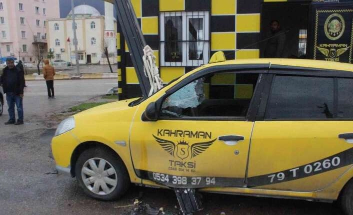 Kilis’te etkili olan fırtına evlerin ve iş yerlerinin çatısını uçururken, çatıdan uçan demirler park halindeki ticari araca saplandı.