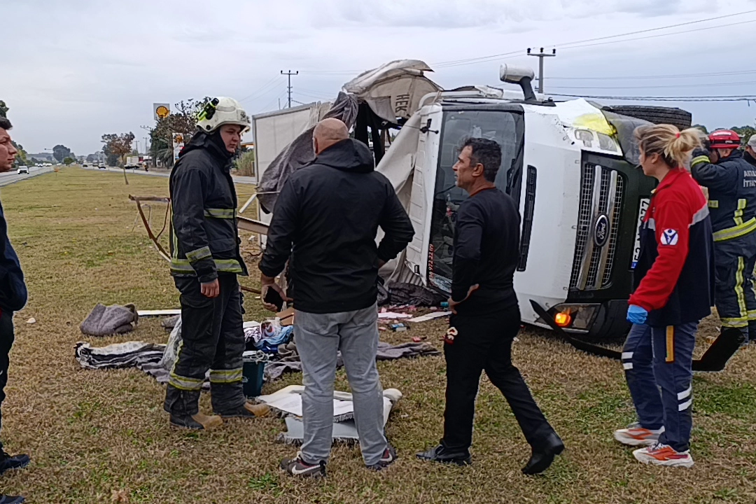 Kaza, dün Manavgat-Alanya D-400 kara yolunda meydana geldi. Alınan bilgiye göre, Durmuş Er'in kullandığı 07 E 7664 kamyonet, Kızılağaç kavşağı sonrası yağmurdan kayganlaşan yolda sürücüsünün direksiyon hakimiyetini kaybetmesi nedeniyle takla atarak refüje devrildi. Kamyonetteki ev eşyaları refüje saçılırken, sürücü ile yanında bulunan kişi kazayı yaralanmadan atlattı. Kazanın ardından yola savrulan eşyaların sahipleri Alanya Avsallar Mahallesi'nden gelerek yağmur altında başka bir kamyonete yükledi.
