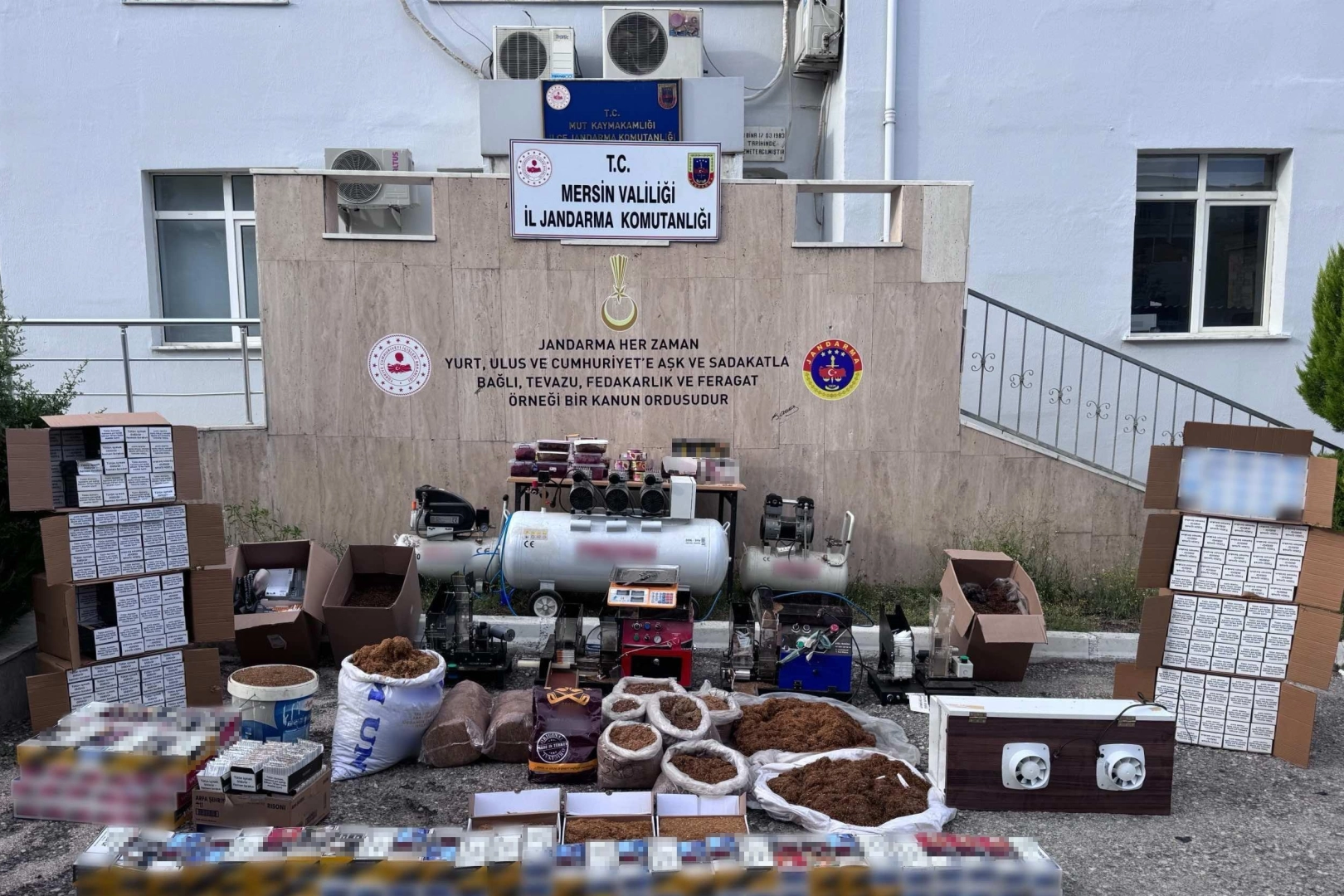 Alınan bilgiye göre, İl Jandarma Komutanlığı ekipleri, Mut ilçesinde kaçak sigara üreterek ticaretini yapanlara yönelik çalışma yaptı. Ekiplerin çalışmasında 2 şüpheli belirlendi. Şüphelilerin yakalanması için belirlenen adrese operasyon düzenlendi. Operasyonda 2 şüpheli yakalanarak gözaltına alındı. Üretim merkezi haline getirilen evde ise 120 bin adet dolu makaron, 5 adet boş makaron, 140 kilogram bandrolsüz tütün, 25 adet sigara sarma makinesi, 4 adet dolum makinesi, 3 adet hava kompresörü ile 1 adet tütün kurutma makinesi ele geçirildi. Göz altına alınan 2 şüphelinin adli işlemlerinin yapılması için, jandarma ekipleri tarafından götürüldü.