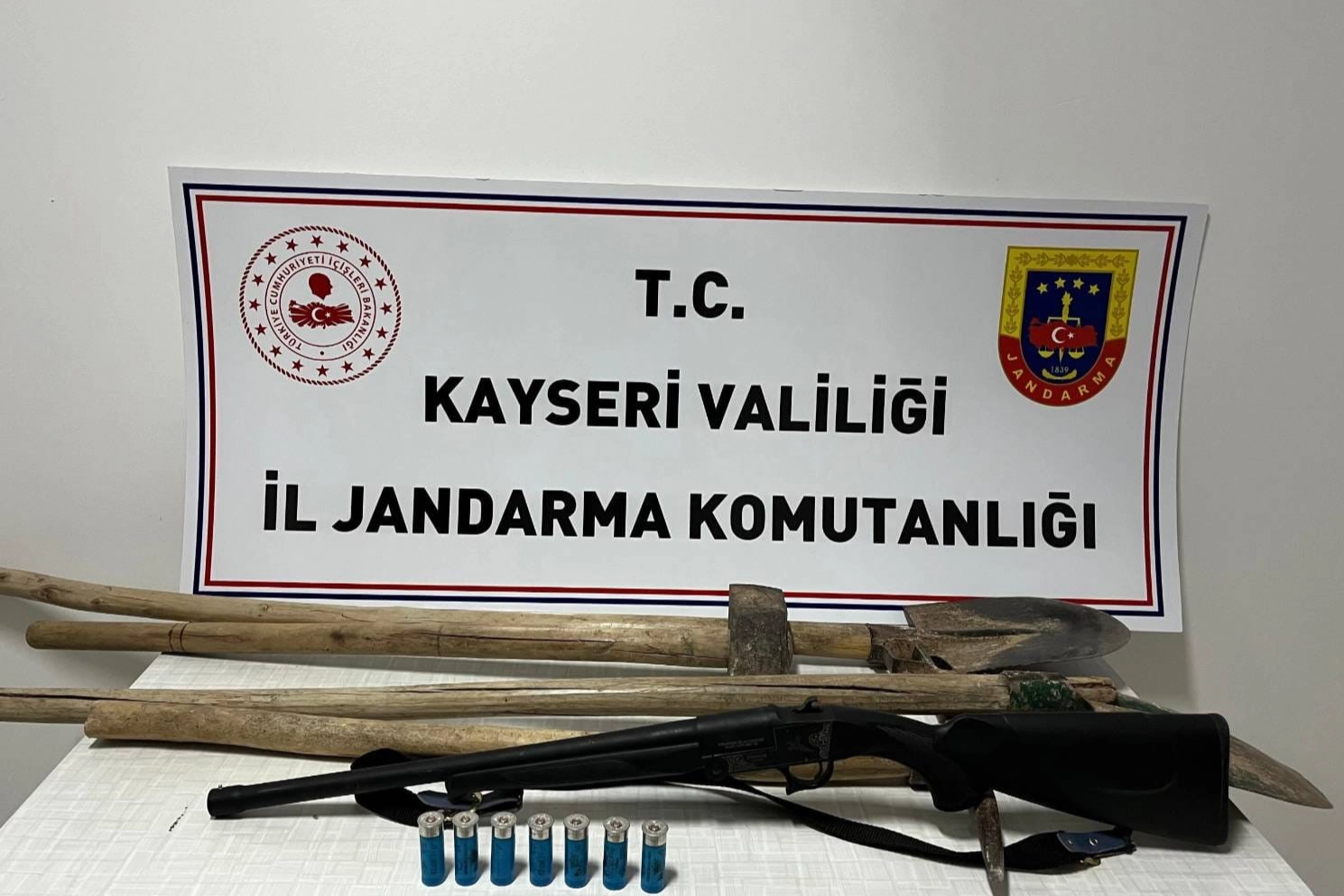 Edinilen bilgiye göre ilçeye bağlı Gömürgen Mahallesi Düzpınar mevkiinde izinsiz kazı yapıldığı yönünde alınan ihbar üzerine jandarma ekipleri harekete geçti. Bölgeye gelen ekipler; O.H. ve A.H.Y.'yi izinsiz kazı yaptıkları sırada suçüstü yakaladı. Olayda kullanılan 1 adet kazma ,2 adet kürek, 1 adet balyoz ve O.H. isimli şahsa ait ruhsatsız av tüfeği ile 7 adet fişek ele geçirildi. O.H. ile A.h.K. gözaltına alınırken O.H.'ye 6 bin 531 TL ceza uygulandı.