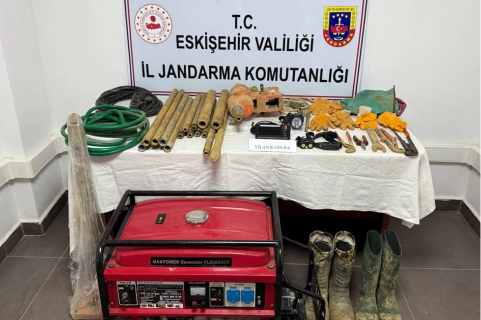 Eskişehir İl Jandarma Komutanlığı ekipleri, Günyüzü ilçesinde şüpheli şahısların kaçak kazı yapacağı bilgisi üzerine çalışma başlattı. Ekipler, 3 şahsı Günyüzü ilçesi Kuzuören Mahallesi Karabağlar mevkiinde kaçak kazı yaparken suçüstü yakaladı. Kazı alanında 1 adet endoskop kamera (yılan kamera), 1 adet jeneratör, 2 adet karot makinesi ve muhtelif kazı malzemeleri ele geçirildi. Gözaltına alınan şüpheliler hakkında soruşturma başlatıldı.