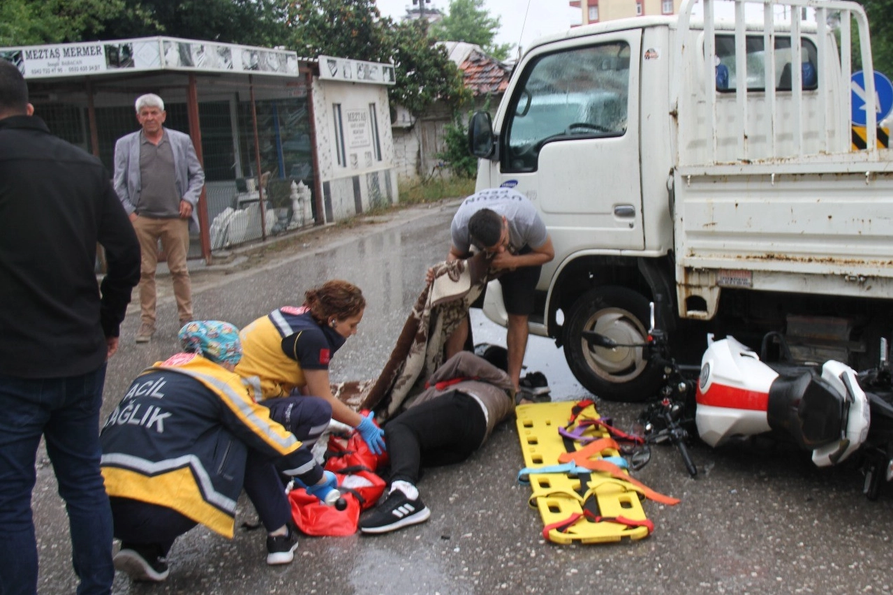 Kaza, dün saat 18.00 sıralarında Akçaalan Mahallesi Tuzlaburun Caddesi'nde meydana geldi. Edinilen bilgiye göre, S.Y. idaresindeki 07 YG 299 plakalı kamyonet ile Davut E.'nin kullandığı 73 ABG 572 plakalı motosiklet çarpıştı. Kazada motosiklet sürücüsü Davut E. ayağından yaralandı. Çevredeki vatandaşlar ambulans gelene kadar yaralının üzerini battaniye örterek yağmurdan korudu. Vatandaşların ihbarı üzerine kaza yerine sağlık ve polis ekipleri sevk edildi. Sağlık ekipleri Davut E'yi olay yerinde yaptıkları ilk müdahalenin ardından ambulans ile Serik Devlet Hastanesine kaldırdı. Yaralının sağlık durumunun iyi olduğu öğrenildi. Polis kazayla ilgili incelemebaşlattı.
