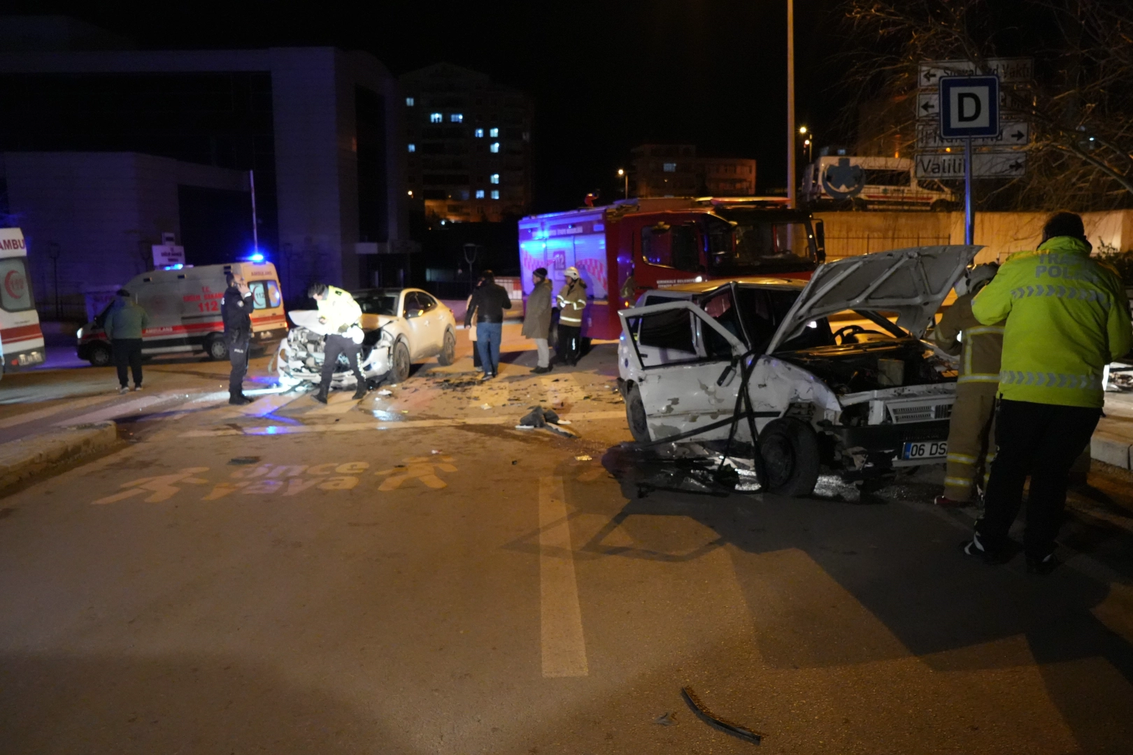 Kaza, gece saatlerinde Fabrikalar Mahallesi Sağlık Caddesi'nde meydana geldi. Edinilen bilgiye göre, S.A. (18) idaresindeki 06 DSP 40 plakalı Fiat marka otomobil ile H.S. (36) yönetimindeki 71 ADE 830 plakalı Citroen marka otomobil kavşakta çarpıştı. Kazada sürücü S.A. (18) ile yolcu P.Ö. (18) ve B.S. (13) yaralandı. Diğer sürücü H.S. ise kazadan yara almadan kurtuldu. 2 araçta da büyük çapta maddi hasar meydana geldi. 112 Acil Çağrı Merkezi'ne yapılan ihbar üzerine olay yerine sağlık, itfaiye ve polis ekipleri sevk edildi. Yaralılar, sağlık görevlilerince yapılan ilk müdahalenin ardından ambulanslarla hastaneye kaldırıldı. Tedavi altına alınan yaralıların hayati tehlikesinin olmadığı öğrenildi. Araçların yanma riskine karşı itfaiye ekipleri tarafından tedbir alındı. Trafik ekiplerince yapılan incelemenin ardından da araçlar otoparka çekildi. Kazaya ilişkin inceleme başlatıldı.