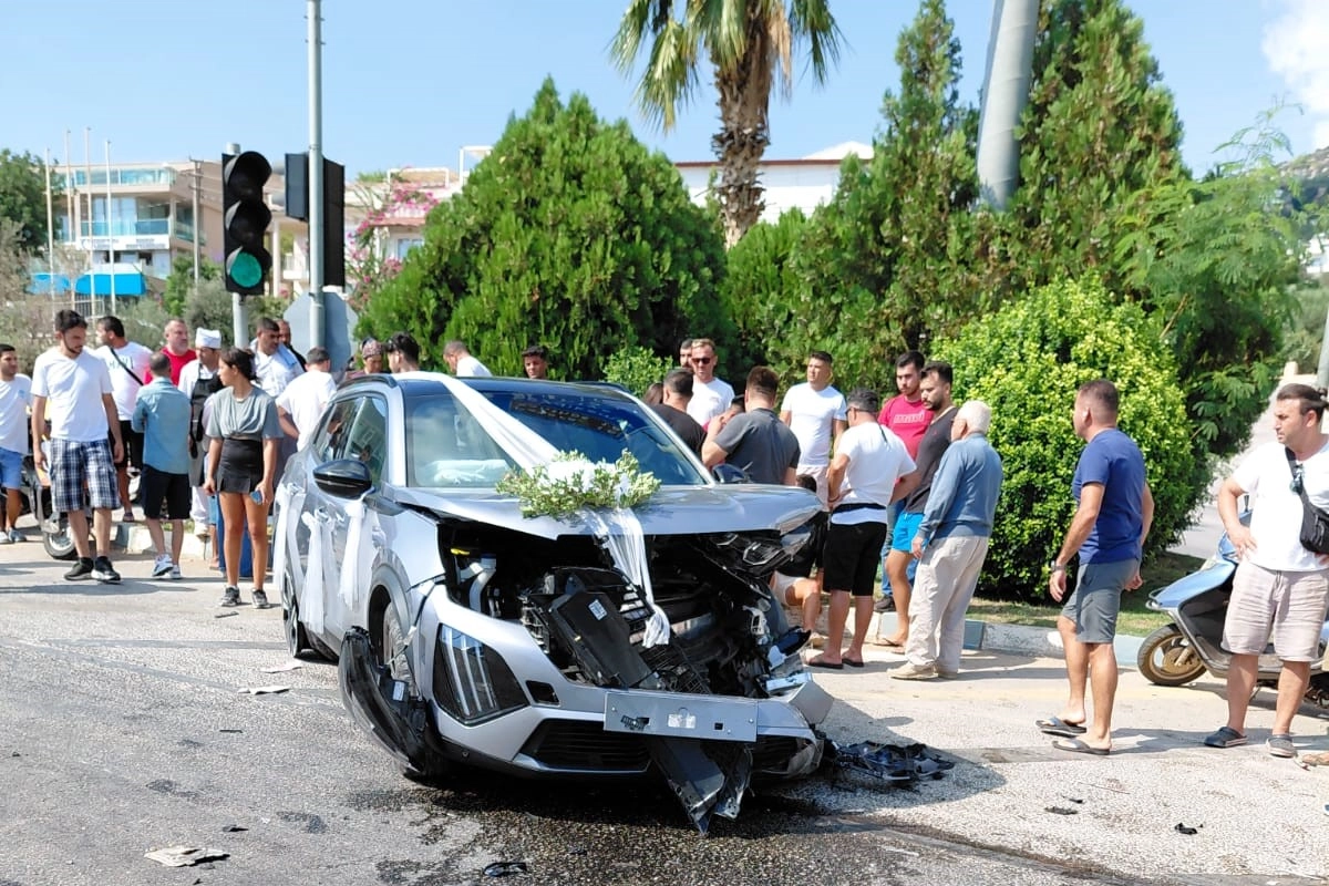 Kaza, Seydikemer-Kaş karayolu üzeri Kalkan Mahallesi'nde yaşandı. Edinilen bilgiye göre, A.Y. idaresindeki 48 AVM 292 plakalı otomobil, R.D.Ö. yönetimindeki 07 CBK 486 plakalı gelin arabasıyla çarpıştı. İhbar üzerine kaza yerine sağlık ve polis ekipleri sevk edildi. Kazada yaralanan otomobil sürücüsü R.D.Ö, 112 Acil Servis ekiplerince kaza yerinde yapılan ilk müdahalenin ardından Kaş Devlet Hastanesi'ne kaldırıldı. Kazayla ilgili soruşturma başlatıldı.