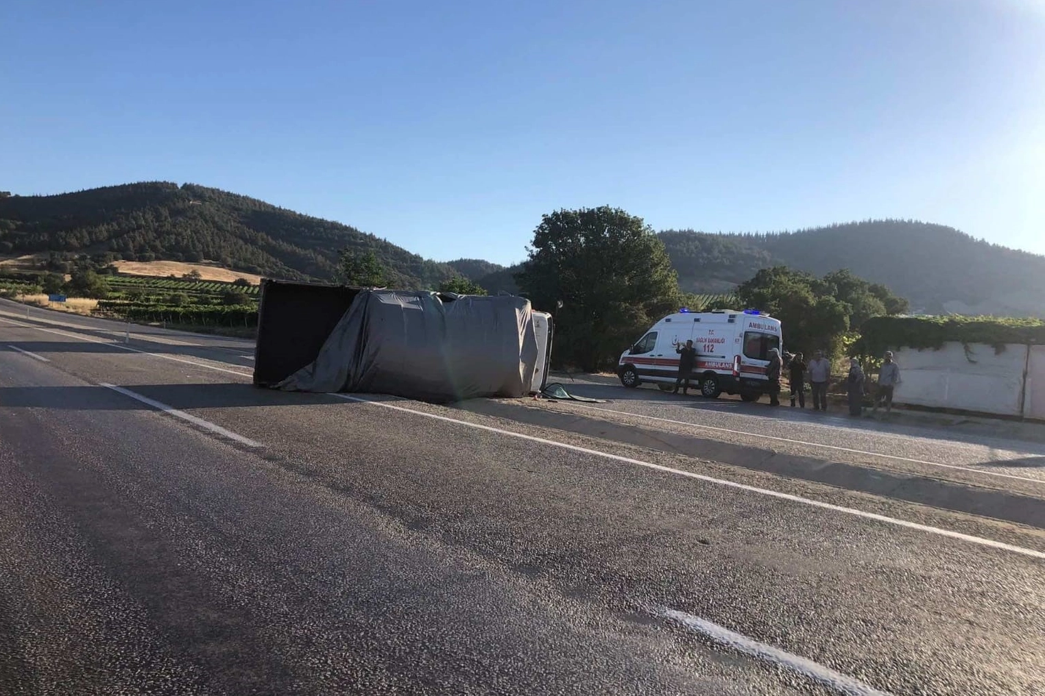 Kaza sabah 07.00 sıralarında Sarıgöl-Buldan karayolunda meydana geldi. Sarıgöl yönünden Buldan istikametine seyretmekte olan 20 FF 017 plakalı kamyonun sürücüsü Kadir K. (23), önüne çıkan köpeğe çarpmamak için direksiyon kırdı. Sürücünün direksiyon hakimiyetini kaybetmesi sonucu kamyon devrilerek yan yattı. Kazada, kamyon sürücüsü Kadir K. (23) ve kamyonda yolcu olarak bulunan Esra K. (23) yaralandı. Yaralılar, olay yerinden 112 ambulanslarıyla Sarıgöl Devlet Hastanesine sevk edilerek tedavi altına aldı. Yaralıların hayati tehlikelerinin bulunmadığı öğrenildi.