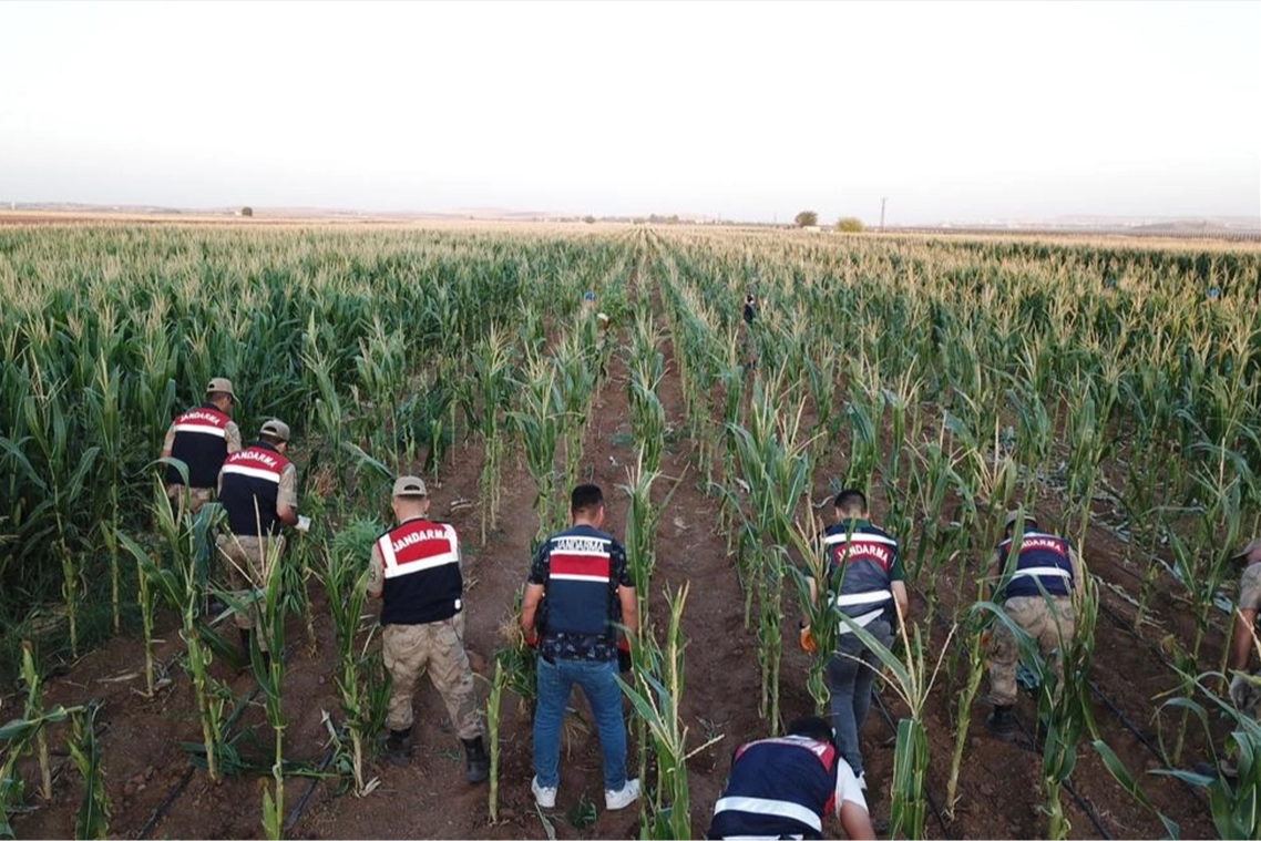 Ekipler, yaptığı kontrollerde Suriye sınırına 500 metre mesafedeki bir mısır tarlasında Hint keneviri ekildiğini tespit etti.