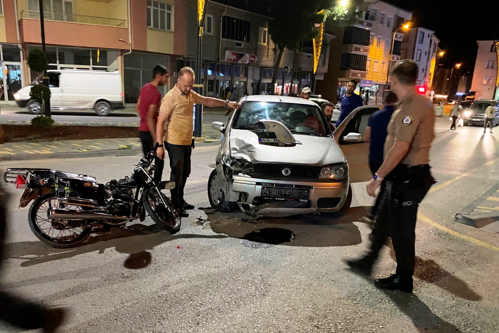 Kaza, akşam saatlerinde Cafer Baran Caddesinde meydana geldi. Edinilen bilgiye göre, S.M. idaresindeki 42 MB 3323 plakalı otomobil ile M.A. yönetimindeki 42 AGR 544 plakalı motosiklet çarpıştı. Kazada, motosiklet sürücüsü M.A. ile arkada yolcu olarak bulunan arkadaşı A.M.Ç. yaralandı. Kaza ihbarı üzerine olay yerine sağlık ve polis ekipleri sevk edildi. Yaralılar ambulanslarla Kulu Bölge Devlet Hastanesine kaldırılarak tedavi altına alındı. Kaza ile ilgili tahkikat başlatıldı.
