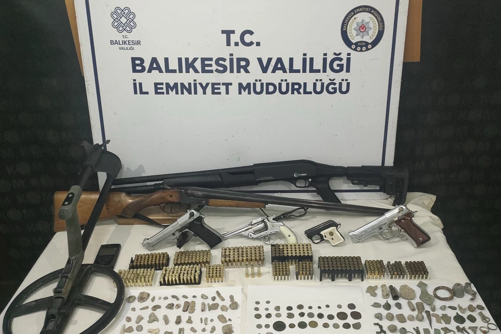 Edinilen bilgilere göre, gerçekleştirilen operasyonda, 9 mm çapında tabanca ve şarjörü, 38 kalibre toplu tabanca, 6,35 mm çapında tabanca, kurusıkı tabanca, pompalı tüfek, av tüfeği ile çeşitli çaplarda toplam 487 adet tabanca fişeği ele geçirildi. Ayrıca operasyonda tarihi eser niteliğinde 148 adet sikke ve obje ile bir adet dedektör bulundu. Operasyon çerçevesinde M.K. isimli şüpheli gözaltına alındı. Şüpheli hakkında mevcutlu olarak tahkikat başlatıldığı öğrenildi.