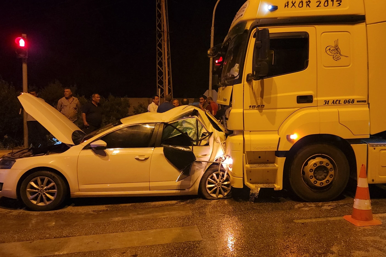 Kaza, Gaziantep-Hatay yolu Hassa ilçesi Küreci kavşağında yaşandı. A.K. idaresindeki 31 ACL 068 plakalı Mercedes Benz marka tır, aynı istikamette ilerleyen B.D. idaresindeki Skoda marka 31 U 4422 plakalı otomobile arkadan çarptı. Kazada otomobilin arka kısmı hurda yığınına dönerken, sürücü ve araçta bulunan 1 kişi yaralandı. Yaralılar olay yerine gelen ambulanslarla hastaneye sevk edildi. Yol, kazaya karışan araçların çekilmesiyle trafiğe açıldı. Polis ekipleri kazayla ilgili inceleme başlattı.