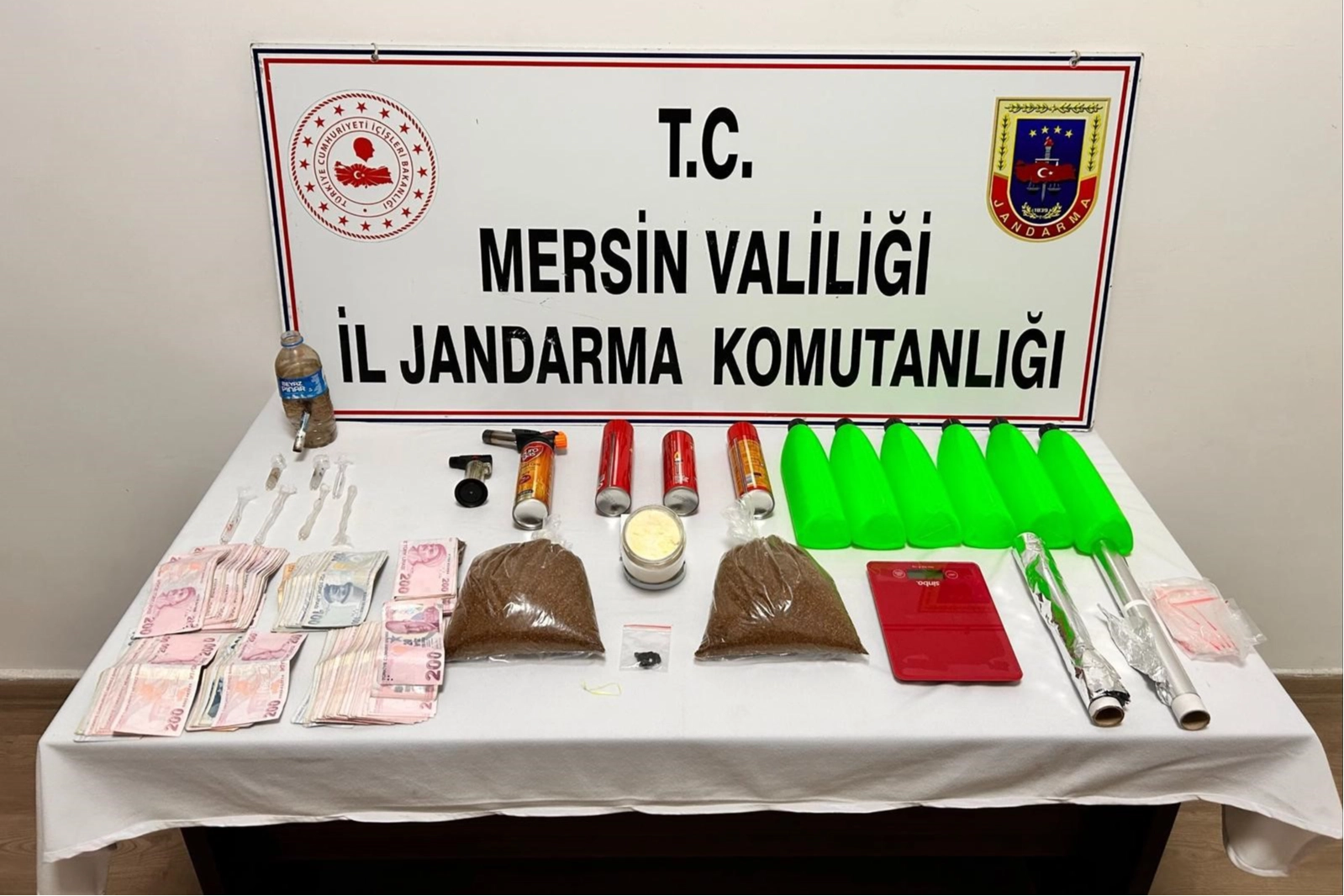 Alınan bilgiye göre, İl Jandarma Komutanlığı ekipleri, merkez Akdeniz ilçesinde 2 şahsın uyuşturucu madde ticareti yaptığını belirledi. Belirlenen şüphelileri takibe alan ekipler, savcılık koordinesinde adreslerine operasyon yaptı. Operasyonda 2 şüpheli de yakalandı. Adreslerde yapılan aramada 2 kilo 930 gram bonzai, 87 gram metamfetamin, 6 adet uyuşturucu madde kullanma aparatı, 6 litre aseton, 4 adet çakmak gazı ile suçtan elde edilen 44 bin 500 TL ele geçirildi. Jandarmada ifadesi alınan 2 şüpheli sevk edildiği adliyede çıkarıldığı mahkemece tutuklandı.
