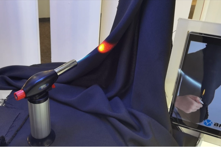 BMS Savunma'nın ORDOS Teknoloji ile yaptığı işbirliği kapsamında, 3 bin santigrat dereceye kadar dayanıklılık sunduğu belirtilen yanmaz kumaşa yönelik çalışmalar tamamlandı. Potansiyel kullanıcılara hazır hale getirilen yanmaz kumaş, Texhibition İstanbul Kumaş, İplik ve Tekstil Aksesuarları Fuarı'nda katılımcılara sunuldu.