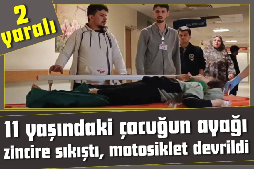 Kaza, dün saat 19.00 sıralarında Huzur Mahallesi Cumhuriyet Caddesi üzerinde meydana geldi. Yabancı uyruklu Hisam R.'nin (37) kullandığı tescilsiz motosikletin arkasında oturan 11 yaşındaki kızı Lamar R.'nin sol ayağı bir anda motosikletin zincirine takıldı. Yaşanan olay sonrası motosiklet devrilirken, baba ve kızı yere düşerek yaralandı. İhbar üzerine olay yerine itfaiye ekibi sevk edildi. Ayağı sıkışan kız, itfaiye ekiplerince kurtarıldı. Yaralı kız ve babası, daha sonra ambulansla İnegöl Devlet Hastanesine kaldırılarak tedavi altına alındı. Polis kazayla ilgili inceleme başlattı.