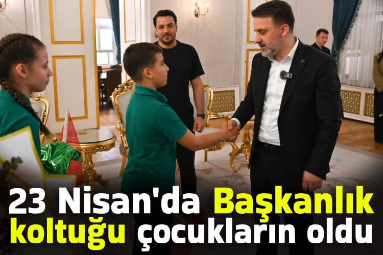 23 Nisan Ulusal Egemenlik ve Çocuk Bayramı kutlamaları kapsamında bu yıl da gelenek bozulmadı. Geleceğin büyükleri, başkanlık koltuklarını devraldı. Bursa Büyükşehir Belediye Başkan Vekili Şahin Biba da koltuğunu BTSO Ali Osman Sönmez Spor Ortaokulu öğrencileri Ömer Akif Avcı, Gökçe Betül Sevinç ve Lina Ravalı’ya devretti. Bursa Büyükşehir Belediyesi Tarihi Binası’nda düzenlenen devir teslim töreninde, geleceğin başkanlarına okul müdürü Selahattin Özkan ve sınıf öğretmeni Ömer Akgül eşlik etti.