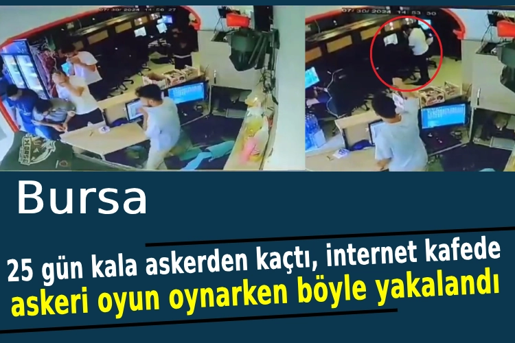Olay, merkez Yıldırım ilçesi Erikli Mahallesi'nde meydana geldi. Edinilen bilgiye göre, Kuzey Kıbrıs Türk Cumhuriyeti'nde (KKTC) askerlik görevini yerine getiren Erdem Y. (25), tezkeresine 25 gün kala 5 gün izin alarak Bursa'ya geldi. İzni biten Erdem Y., KKTC'ye geri dönmeyince hakkında yakalama kararı çıkartıldı. Yıldırım İlçe Emniyet Müdürlüğü'ne bağlı Ertuğrulgazi Polis Merkezi Amirliği'ne bağlı ekipler, Erdem Y.'nin bir internet kafede olduğu ve oyun oynadığını tespit etti. İnternet kafeye müşteri gibi giren polis, Erdem Y'.yi askeri oyun oynarken gözaltına aldı. Gözaltına alınan şüpheli, işlemlerinin ardından adliyeye sevk edildi. Ardından Erdem Y., birliğine gönderilmek üzere Muradiye Askerlik Şubesi'ne teslim edildi. O anlar güvenlik kamerasına saniye saniye yansıdı.
