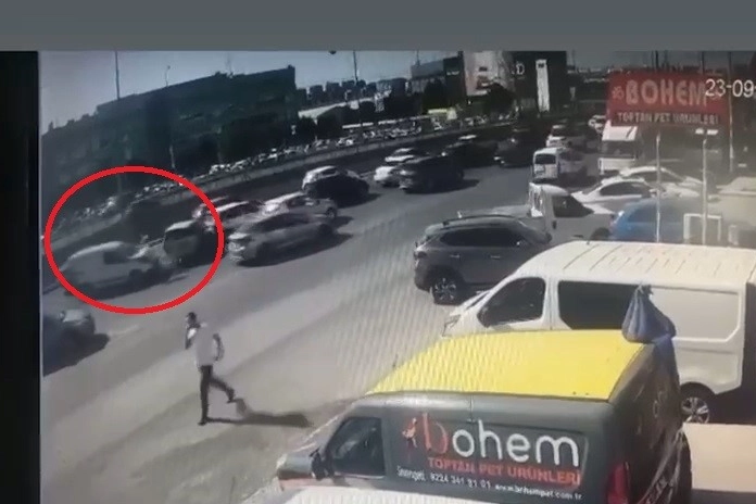 Kaza, merkez Osmangazi ilçesi Emek Zekai Gümüşdiş Mahallesi Sanayi Caddesi üzerinde meydana geldi. Hafif ticari aracın sürücüsü, cadde üzerinde hızla seyir halindeyken önünde yavaşlayan trafiği geç fark etti. Frene basan sürücü kayan aracın kontrolünü kaybedince araç, otomobile çarptı. Savrulan otomobil de önündeki 2 araca vurarak durabildi. Kaza anı güvenlik kamerasına yansırken, kazada yaralanan olmadı.