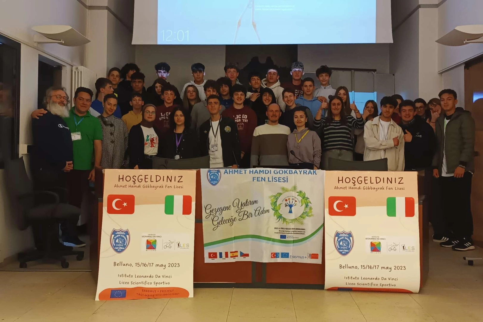 İtalya'da kendi tasarladıkları fotokapanlı kuş eviyle kuş türlerini gözlem etkinliklerine katılan öğrenciler ise Leonardo Da Vinci Lisesi öğrencileriyle proje sunum yöntemiyle bilgi paylaşımında bulundu.