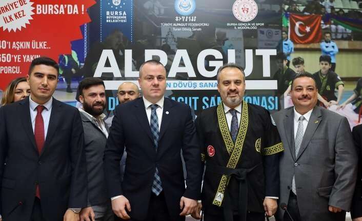 Dünya Alpagut Şampiyonası’nın 2018 ve 2019 yıllarında Azerbaycan’ın başşehri Bakü’de yapıldığını hatırlatan Başkan Aktaş, bu yılki şampiyonaya Bursa olarak ev sahipliği yapacak olmanın mutluluğunu yaşadıklarını kaydetti. Alpagutun, bir dövüş sporunun dünyaya Türkçe bakışı olarak yansıması olduğunu ifade eden Başkan Aktaş, “Bu spor, dünyanın en eski milletlerinden biri olan Türk insanın, binlerce yıl nasıl hayatta kaldığını ispatlayan, aslında oyun ve sporla kendini koruma ve savunma tekniklerinin yeniden dünyaya bir spor dalı olarak sunulmasıdır. Alpagut, Türklerin kendi oyunlarının yine kendi dünya görüşü ve günümüz dövüş teknikleriyle harmanlanarak bir spor dalı olarak ortaya çıkmış hâlidir. Bu düşünce yalnızca Türkler arasında kalmamıştır. Türk insanın spor ahlâkı, rakibe saygı, olgun fertler yetiştirme yöntemi bugün 3 kıtada 30’u aşkın ülkede ve binlerce sporcu ile yapılmaktadır. Ben şampiyonanın Bursa’mıza ve ülkemize hayırlı olmasını diliyorum” diye konuştu. Dünya Göçebe Oyunları’nın da bu yıl Bursa’da yapılacağını hatırlatan Başkan Aktaş, bu tür uluslararası faaliyetlerin şehrin tanıtımı açısından önemli bir araç olduğunu da sözlerine ekledi. Alpagut Türkiye Federasyonu Başkanı Cemal Ersoy da alpagutun bir anlamda Türklerin hayat ve spor felsefesi olduğunu vurguladı. Günümüzde karate, judo, güreş, jiu-jitsu ve tekvando gibi adlarla sergilenen spor dallarının aslında alpaguttan alındığını ifade eden Ersoy, “Ama ne yazık ki biz şampiyonalarda salonlara girdiğimizde başka ülkelerin bayraklarına selâm veriyoruz. İlk kez kardeş ülke Azerbaycan’da gerçekleştirilen faaliyetle ata sporumuz alpagut 40’ı aşkın ülkeyi sardı. Alpagut Türk sporu olarak anılacak ve bu spor bizim bayrağımızın altında, bizim ahlâkımızla, bizim an’anelerimizle yapılacak. Şampiyonamızın ana sponsorluğunu üstlenen Bursa Büyükşehir Belediye Başkanımıza çok teşekkür ediyorum” dedi. Dünya Alpagut Federasyonu Teknik Direktörü ve Avrupa Federasyonu Başkanı Tuncay Meriçli de alpagut sporunun teknik özellikleri hakkında bilgi verdi. Alpagut Türkiye Federasyonu Başkanı Cemal Ersoy ve Dünya Alpagut Federasyonu Teknik Direktörü ve Avrupa Federasyonu Başkanı Tuncay Meriçli, toplantının sonunda Başkan Aktaş’a “Yargan” yani öğretmen kıyafeti hediye etti.