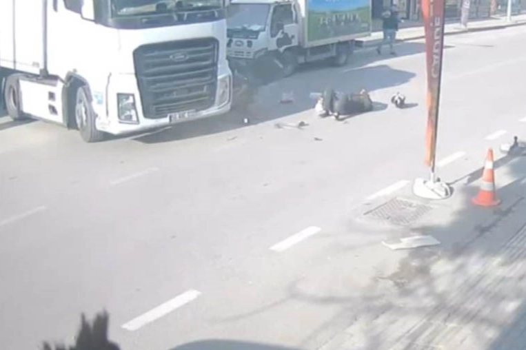 Kaza, merkez Osmangazi ilçesinde meydana geldi. Edinilen bilgiye göre, seyir halindeki motosiklet ara sokaktan anayola çıkan tırla çarpıştı. Kazanın şiddetiyle motosiklet sürücü düşerek yaralandı. O anlar çevrede bulunan bir iş yerinin güvenlik kamerasına yansıdı. İhbar üzerine olay yerine sağlık ve polis ekipleri sevk edildi. Yaralı motosiklet sürücüsüne ilk müdahale olay yerinde yapılırken, ardından ambulansla hastaneye kaldırıldı.