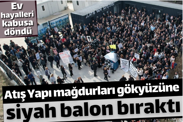 Bursa'da geçtiğimiz aylarda girdiği mali kriz sonrası konkordato ilan eden Atış Yapı'ya tepki büyüyor. Konkordato sonrası yarım bırakılan projelerle birlikte konut hayali kabusa dönüşen 3 bin 500 aile mağdur oldu. Adalet arayışını sürdüren aileler, Atış Yapı'nın Nilüfer ilçesindeki şantiyesi önünde toplandı. Basın açıklaması yapan aileler, daha sonra gökyüzüne siyah balon bıraktı.