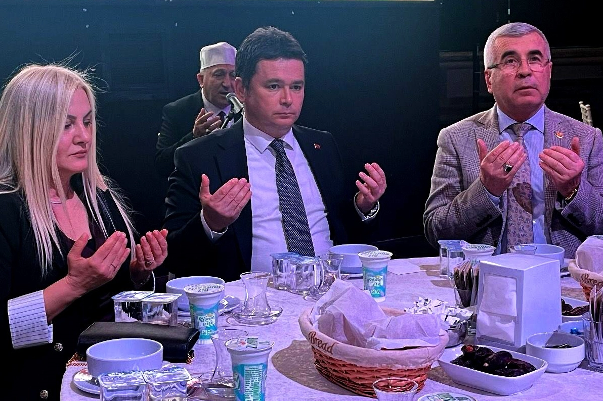 Ramazan ayının bereketini, birlik ve beraberliğini kalabalık sofralarda oruç açarak yaşamaya özen gösteren Osmangazi Belediye Başkanı Erkan Aydın, belediye meclis üyeleri, muhtarlar ve belediye meclisinde grubu bulunan siyasi partilerin ilçe başkanları için iftar yemeği verdi. Panorama 1326 Bursa Fetih Müzesi’nde gerçekleşen iftar yemeğine CHP Osmangazi İlçe Başkanı Raşit Gürbüz, MHP Osmangazi İlçe Başkanı Kerim Gürsel Çelebi, Osmangazi Muhtarlar Derneği Başkanı Burhan Mandacı, meclis üyeleri, muhtarlar, başkan yardımcıları ve birim müdürleri katıldı. Osmangazi Belediye Başkanı Erkan Aydın, iftar saati öncesinde masaları tek tek dolaşarak konuklarının her biriyle ayrı ayrı tokalaştı. Akşam ezanının okunmasının ardından hep birlikte dua edilerek oruç açıldı.