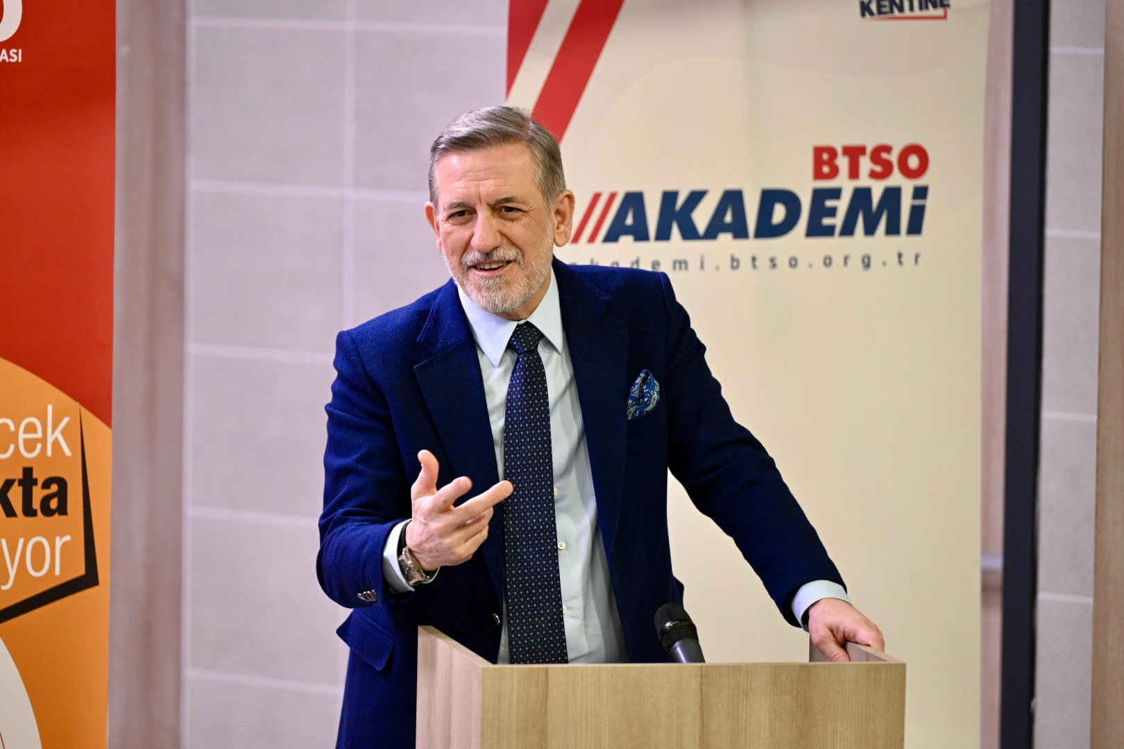 Bursa iş dünyasının eğitim ve gelişim platformu BTSO Akademi kapsamında düzenlenen eğitimin açılışında konuşan BTSO Yönetim Kurulu Başkanı İbrahim Burkay, Türkiye'nin en önemli gastronomi yatırımlarından biri olan BTSO Mutfak Akademi'de faydalı bir eğitim programı için buluştuklarını söyledi. BTSO Mutfak Akademi Projesi'nin, yiyecek-içecek sektörü başta olmak üzere, hizmet sektörüne nitelikli insan kaynağı kazandıran en önemli eğitim merkezlerinden biri olduğunu ifade eden başkan Burkay, "Bu merkezde mesleki becerilerinizi geliştirmek çok kıymetli ancak şunu da unutmamak lazım; hizmet sektöründe en önemli şey ayakta kalabilmek. Mutfakta iyi olmanız elbette önemli ama en az onun kadar, hatta belki daha da önemli olan, bu maharetinizi doğru kitleyle buluşturabilmek. Sadece malzemeleri iyi kullanmak yetmiyor, aynı zamanda bu işin finansal boyutunu da iyi yönetebilmeniz gerekiyor." dedi.