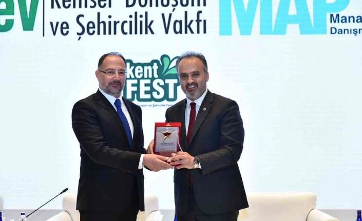 Çevre, Şehircilik ve İklim Değişikliği Bakanlığı ile Kentsel Dönüşüm ve Şehircilik Vakfı (KENTSEV) iş birliğiyle “Çevresel Sürdürülebilirliğe Dayalı Kentsel Dönüşüm ve Akıllı Şehirler” temasıyla hayata geçirilen 7’nci Ulusal Her Yönüyle Kentsel Dönüşüm Kongresi İstanbul’da yapıldı. Türkiye genelinden pek çok il ve ilçe belediye başkanları ile KENTSEV yönetim kurulu üyelerinin katıldığı kongrede, örnek projelere imza atan belediyelere ‘Kentsel Dönüşüm Başarı ve Teşvik’ ödülleri verildi. Bursa Büyükşehir Belediyesi de hayata geçirdiği Hanlar Bölgesi Çarşıbaşı Kentsel Tasarım Projesi, Gönül Bağı ve Açık Veri Platformu projeleriyle ödüle layık görüldü. Bursalıların yaşamını kolaylaştırmak için hayata geçirdikleri projelerin ödüle değer görülmesinin mutluluk verici olduğunu ifade eden Bursa Büyükşehir Belediye Başkanı Alinur Aktaş, kentsel dönüşüm ve akıllı şehircilik uygulamalarının ortak aklın ürünü olduğunu kaydetti.