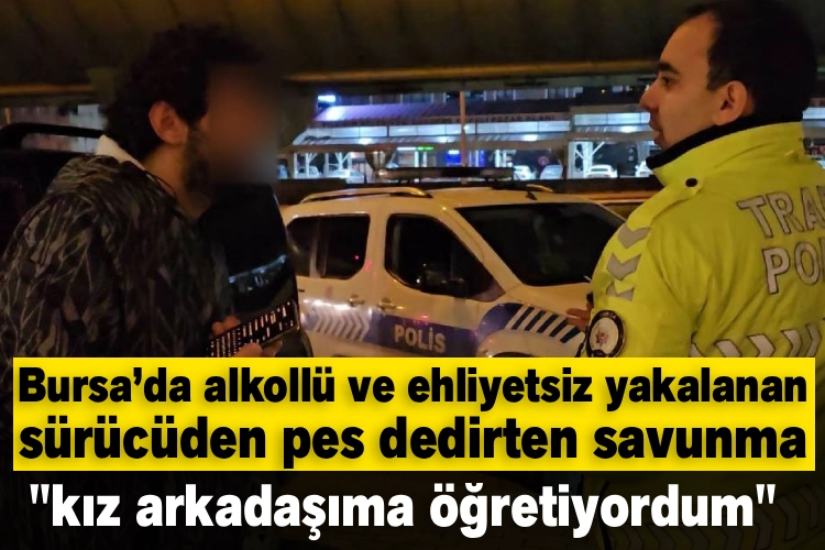 Bursa'nın Yıldırım ilçesi Gökdere mevkiinde trafik uygulama noktasını fark eden alkollü ve ehliyetsiz sürücü, dikkat çekmemek için aracını yol kenarına park ederek uzaklaşmaya çalıştı. Durumu fark eden trafik ekipleri, şahsı araç başında yakaladı. Önce alkol metreye üflemek istemeyen sürücünün yapılan alkol kontrolünde 1.12 promil alkollü ve ehliyetsiz olduğu da belirlendi. Alkollü araç kullandığını inkar eden sürücü "kız arkadaşıma araç kullanmayı öğretiyordum" dedi. Polisin kamera kaydı olduğunu söylemesine rağmen böyle bir görüntünün olmadığına ısrar eden sürücüsü Şahıs hakkında "alkollü araç kullanmak" ve "ehliyetsiz araç kullanmak" suçlarından cezai işlem uygulandı. Polis ekiplerine direnen sürücü, "Beni araç kullanırken gördünüz mü" diyerek kendisini savunmaya çalışsa da cezai işlemden kaçamadı. Polis ekipleri, trafik güvenliğini tehlikeye atan sürücülere yönelik denetimlerin aralıksız sürdürüleceğini bildirdi.