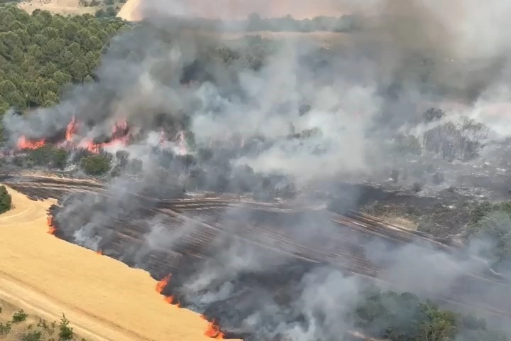 Bursa'nın Yenişehir ilçesi Demirboğa Mahallesindeki kırsa alanda bulunan buğday tarlalarından yükselen alevler, gökyüzünü dumanla kapladı. İhbar üzerine olay yerine Bursa Orman Bölge Müdürlüğü ekipleri hareket etti. 41 personel, 3 helikopter, 6 arazöz ve 2 su tankeri ile müdahale ederken, tarlanın ortasında kalan bir biçerdöver ise alevlere teslim oldu. Söndürme ekipleri, alevleri kontrol altına almaya çalışıyor.