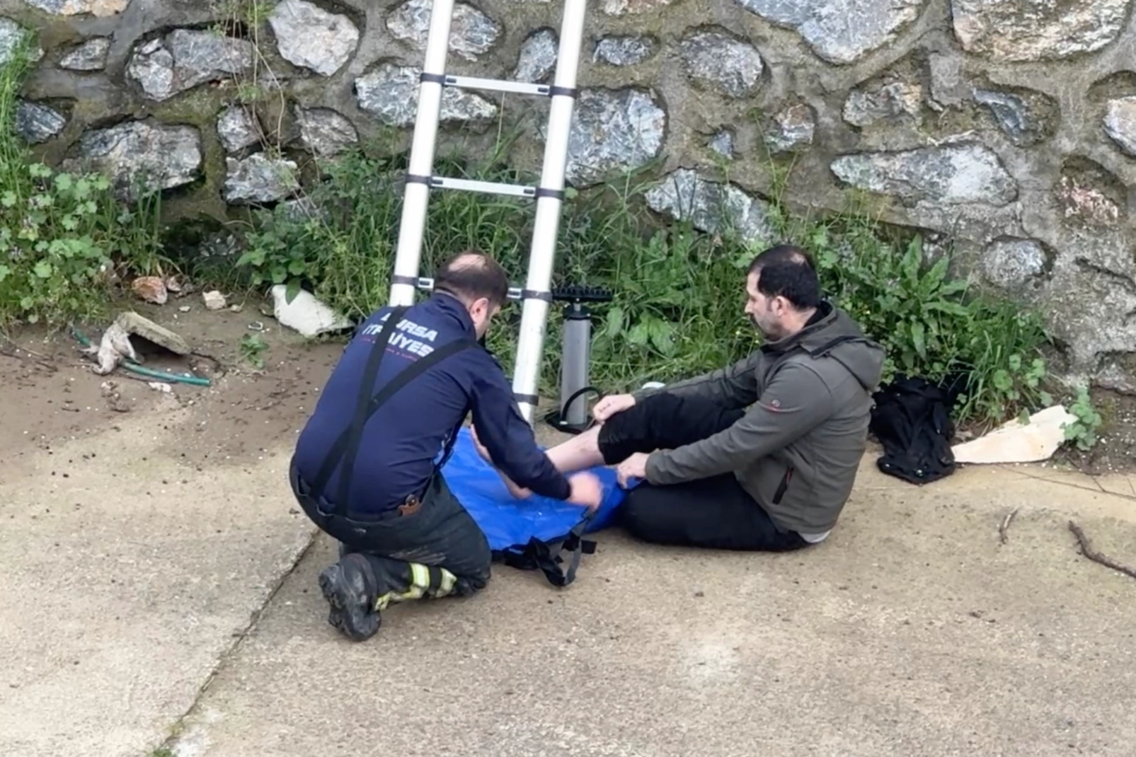 Bursa'da dereye düşen adamı ekipler kurtardı