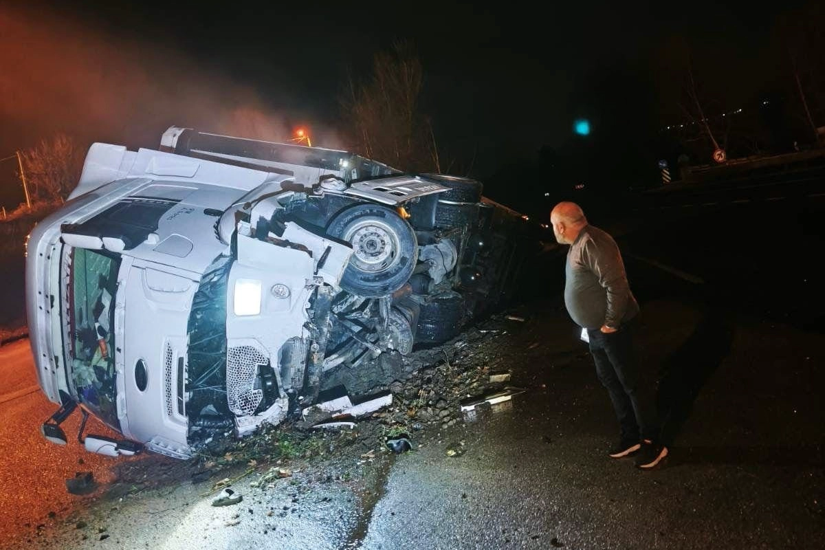 Kaza, saat 06.00 sıralarında Bursa Ankara karayolu üzeri İnegöl’ün kırsal Eskikaracakaya Mahallesi mevkiinde meydana geldi. Edinilen bilgiye göre, İnegöl’den Bozüyük istikametine seyir halinde olan Serhat U. (32) idaresindeki 06 FEY plakalı tır, sürücüsünün direksiyon hakimiyetini kaybetmesi sonucu devrildi. Yağmur suyu kanalına düşen tırda sıkışan sürücü yaralandı. İhbar üzerine olay yerine sevk edilen sağlık ekiplerince ilk müdahalesi yapılan yaralı, ambulansla İnegöl Devlet Hastanesine kaldırıldı. Yaralının sağlık durumunun iyi olduğu öğrenildi.
