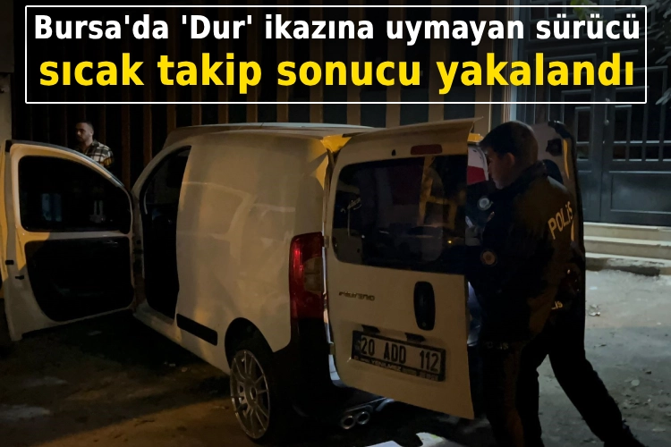 Merkez Yıldırım ilçesi Duaçınarı Mahallesi üzerinde devriye atan Yıldırım Suç Önleme ve Soruşturma Büro Amirliği ekipleri, şüphelendikleri bir araca 'Dur' ikazında bulundu. Arkasında polisi gören zanlı ekiplerden kaçmaya başladı. Ana caddeden ara sokaklara kaçan zanlı ekiplere izini kaybettirmeyi denese de başaramadı. Yıldırım SÖS ekiplerinin ısrarlı takibi sonucu 20 ADD plakalı hafif ticari otomobil park halindeki başka bir otomobile çarptı. Sürücüsü olay yerinden yaya şekilde kaçmaya çalışsa da ekipler şüpheliyi kıskıvrak yakaladı. Şahsa yapılan GBT'de şahsın Umut K. olduğu ve 5 ayrı suçtan arandığını tespit edildi. Umut K., işlemleri yapılmak üzere Yıldırım Suç Önleme ve Soruşturma Büro Amirliği'ne götürüldü. Öte yandan, ekiplerden kaçarken ters yöne giren ve ışık ihlali yaparak kazaya karışan Umut K.'ya 60 bin lira ceza kesildi.