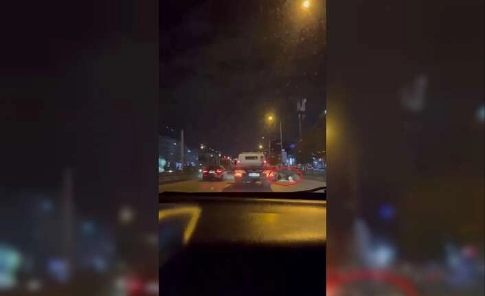 Olay, merkez Nilüfer ilçesi Beşevler Mahallesi İzmir Yolu Caddesi üzerinde meydana geldi. Edinilen bilgiye göre, motosiklet sürücüsü yola düşen koliyi fark etmeyerek üzerinden geçti. Ardından dengesini kaybeden sürücü, yere düşerek yanında seyreden kamyonetin altında kalmaktan son anda kurtuldu. Hafif yaralanan motosiklet sürücüsü ihbar üzerine bölgeye gelen ambulans ile tedbir amaçlı Çekirge Devlet Hastanesi'ne kaldırıldı. O anlar ise arkasında seyreden bir sürücünün cep telefon kamerasına yansıdı.