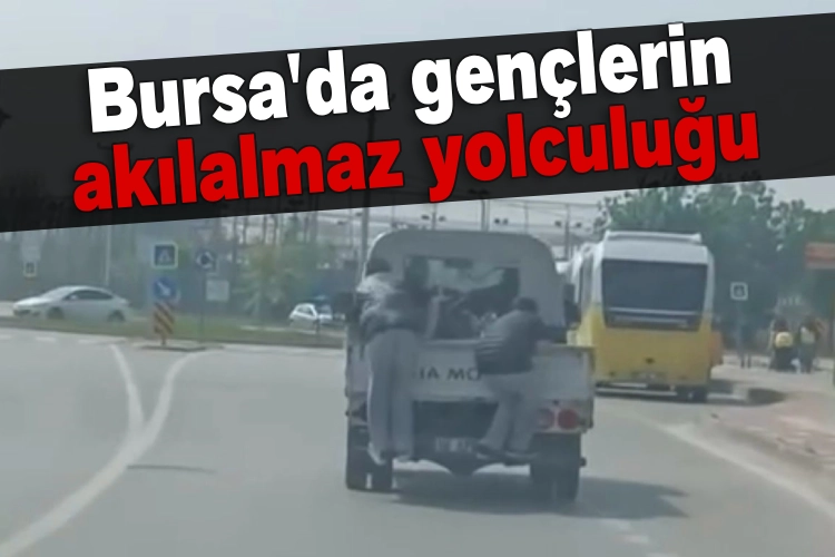 Olay, Gürsu ilçesinde meydana geldi. Canlarını hiçe sayan 2 genç, kasalı kamyonetin arkasına tutunarak ilerlemeye başladı. O anları gören diğer sürücüler, kamyonet sürücüsünü korna ile uyarsa da sonuç alamadı. Çocukların tehlikeli oyunu, saniye saniye amatör kamera ile kaydedildi.