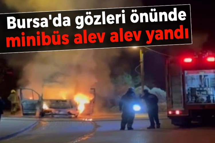 Bursa'da gözleri önünde minibüs alev alev yandı