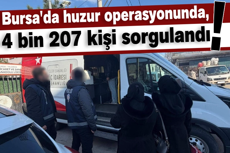 Bursa Emniyet Müdürlüğü ekiplerince, kamu düzeni ve güvenliğinin sağlanması, suç ve suçlularla etkin mücadele edilmesi ve düzensiz göçün önlenmesi hedefiyle il genelinde huzur uygulaması gerçekleşti. 20 Ocak 2026 tarihinde saat 00.00 ile 18.00 arasında yapılan uygulama çerçevesinde 4 bin 207 şahıs sorgulandı. Denetimlerde 9 Türk vatandaşı ile 30 yabancı uyruklu şahıs hakkında işlem yapıldı.