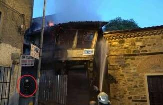 Öte yandan yangına müdahale eden bir itfaiye eri yanarak yıkılan tarihi binanın altında kalmaktan son anda kurtuldu.