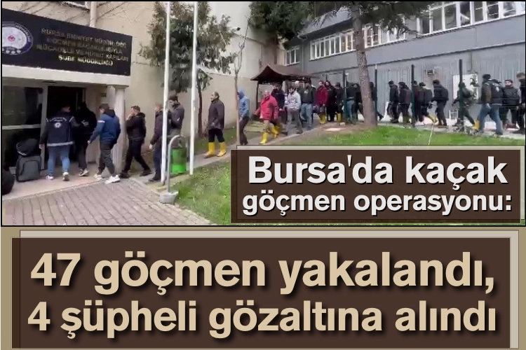 Bursa'da polis ekipleri tarafından düzenlenen operasyonda, yabancı uyruklu şahısları kaçak yollarla ülkeye getirip yer temin eden 4 şüpheli ile 47 kaçak göçmen yakalandı.