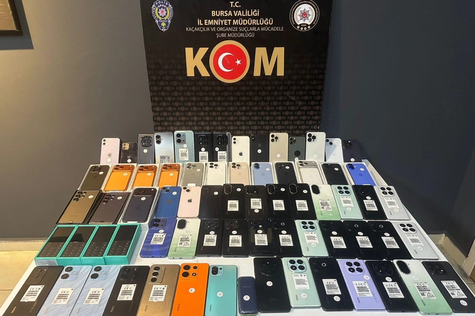 Bursa'da düzenlenen operasyonda piyasa değeri yaklaşık 3 milyon lira olan 70 adet gümrük kaçağı cep telefonu ile 235 adet USB kablo ele geçirildi. Olayla ilgili 3 şüpheli hakkında adli işlem başlatıldı.