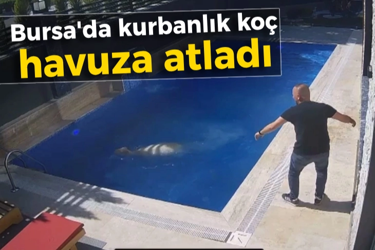 Olay, İnegöl'ün Kemalpaşa Mahallesi'nde meydana geldi. Samet Kasap, kurban için aldığı koçu kesmek için hazırlamaya başladı. O sırada kurtulan koç, kaçmaya başladı. Bir villanın bahçesine giren koç, havuza atlayarak yüzmeye başladı. Sedat Kasap, havuza atlayıp kısa süreli yüzdükten sonra havuz kenarına gelen koçu, eliyle dışarı çıkarıp yakaladı.