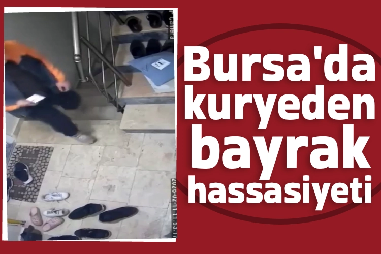 Bursa'da kuryenin bayrak hassasiyeti izleyenlerin tüylerini diken diken yaparken o anlar güvenlik kamerasına saniye saniye yansıdı.